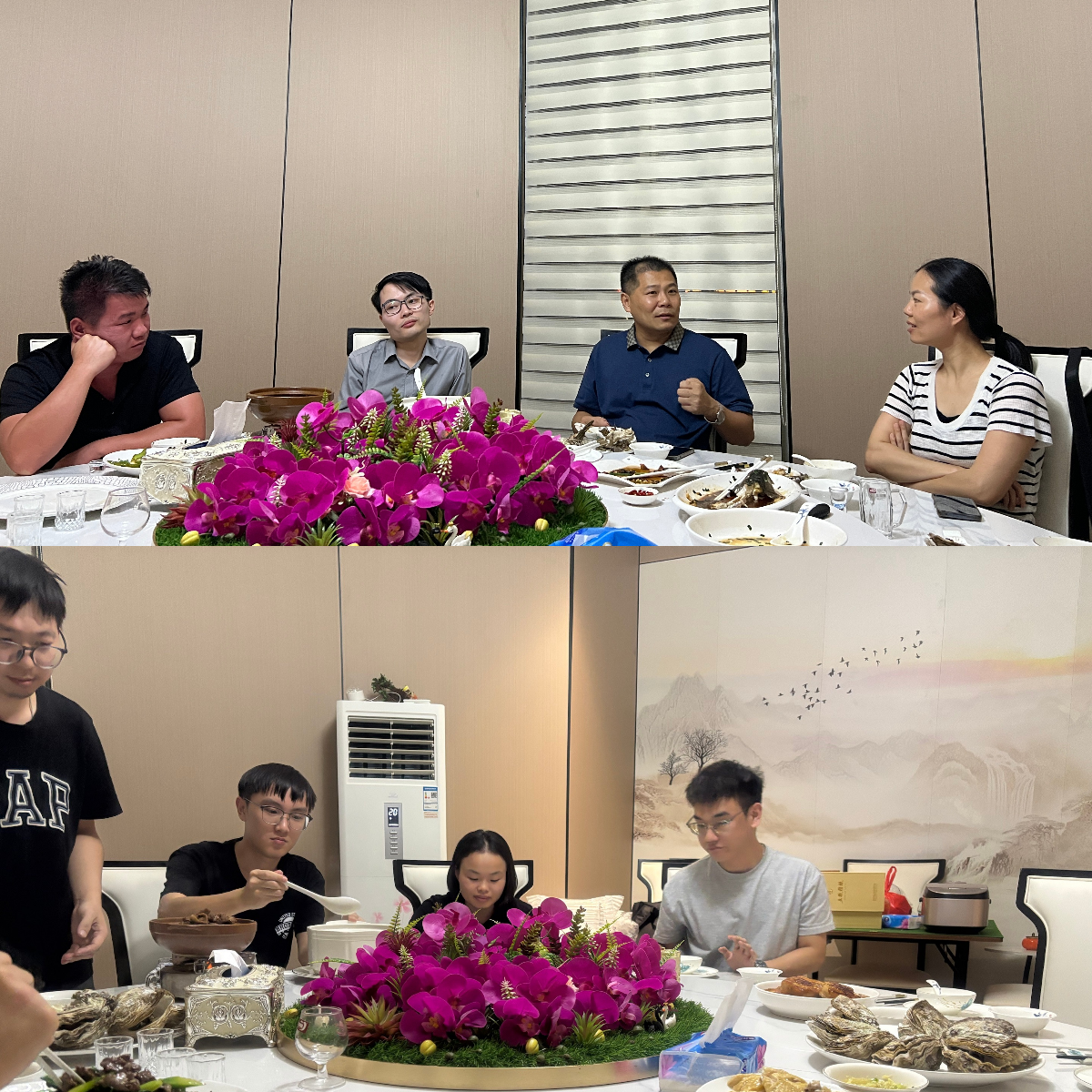 During the meal, everyone spoke freely about their work achievements in August. Colleagues actively exchanged insights on growth through teamwork and customer service skills. The boss, usually serious at work, also listened attentively to everyone's sharing and offered his own perspectives, leaving everyone with valuable insights.